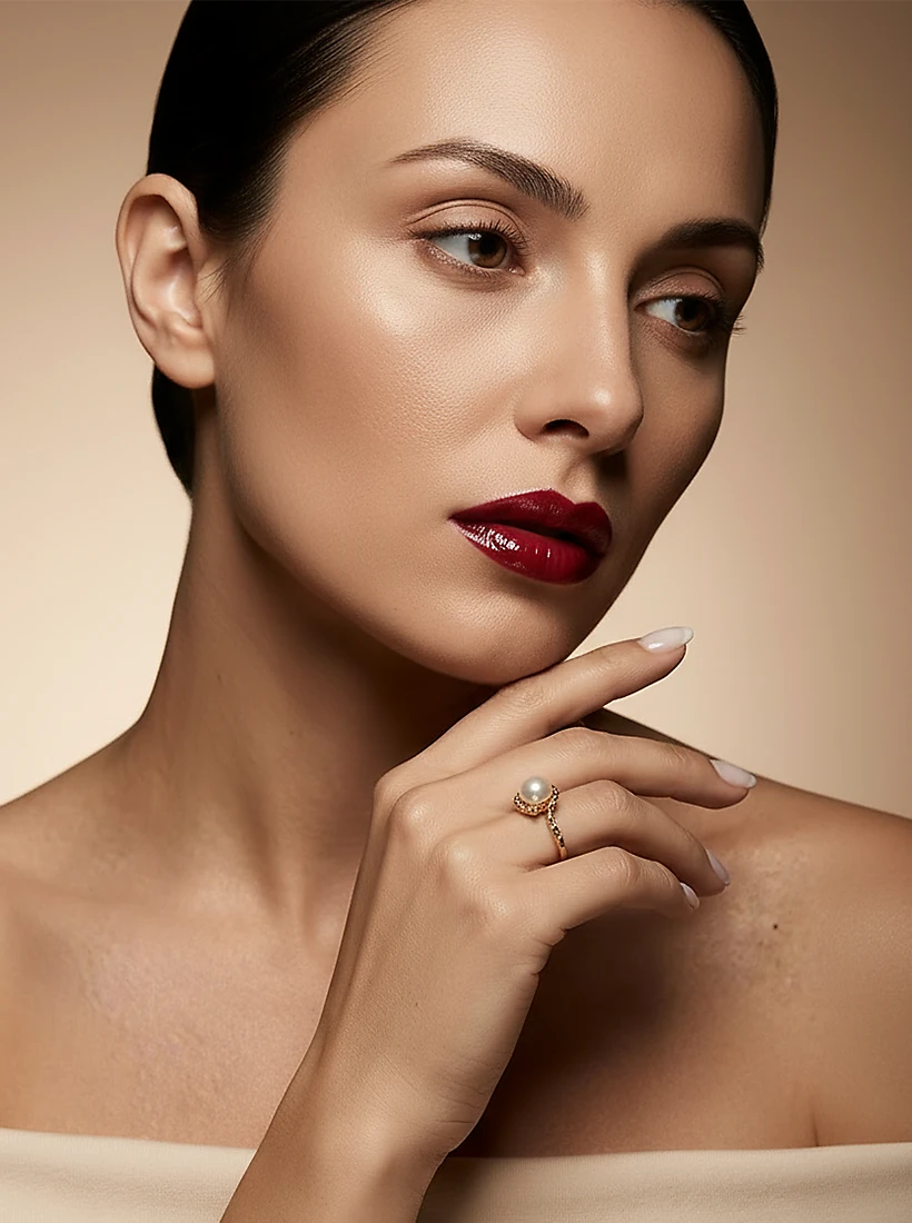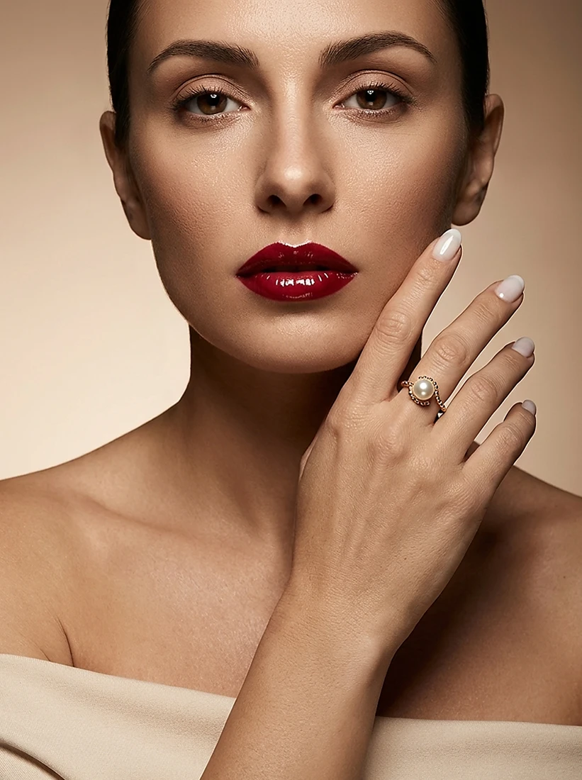 A pérola iluminada repousa com graça, destacando cada gesto com suavidade radiante. Uma peça que envolve as mãos em feminilidade atemporal, revelando um brilho calmo e irresistivelmente elegante.