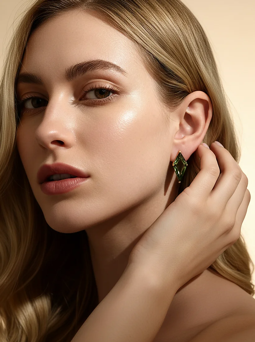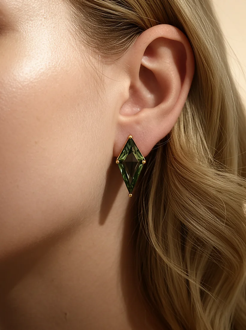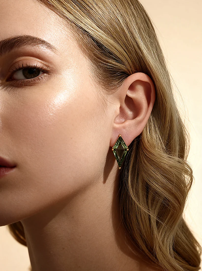 Minimalista e marcante, o Brinco Esmeralda Prisma combina geometria elegante e brilho profundo para um toque moderno e irresistivelmente sofisticado.