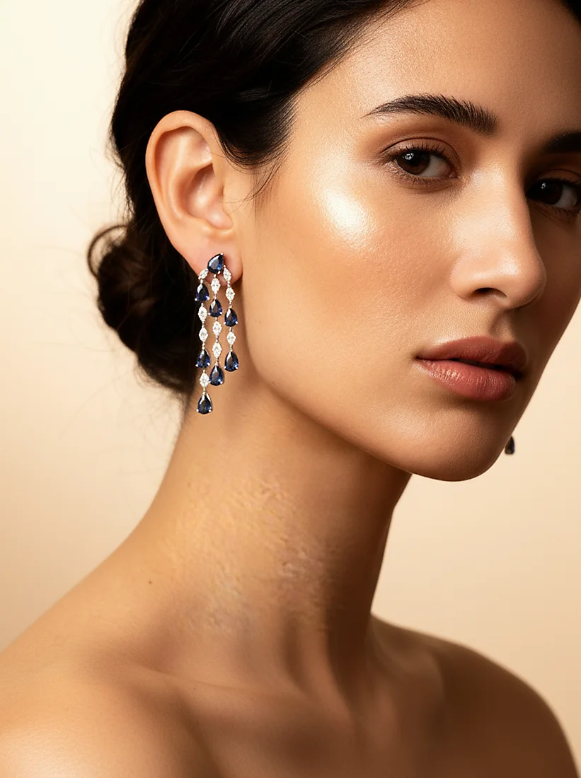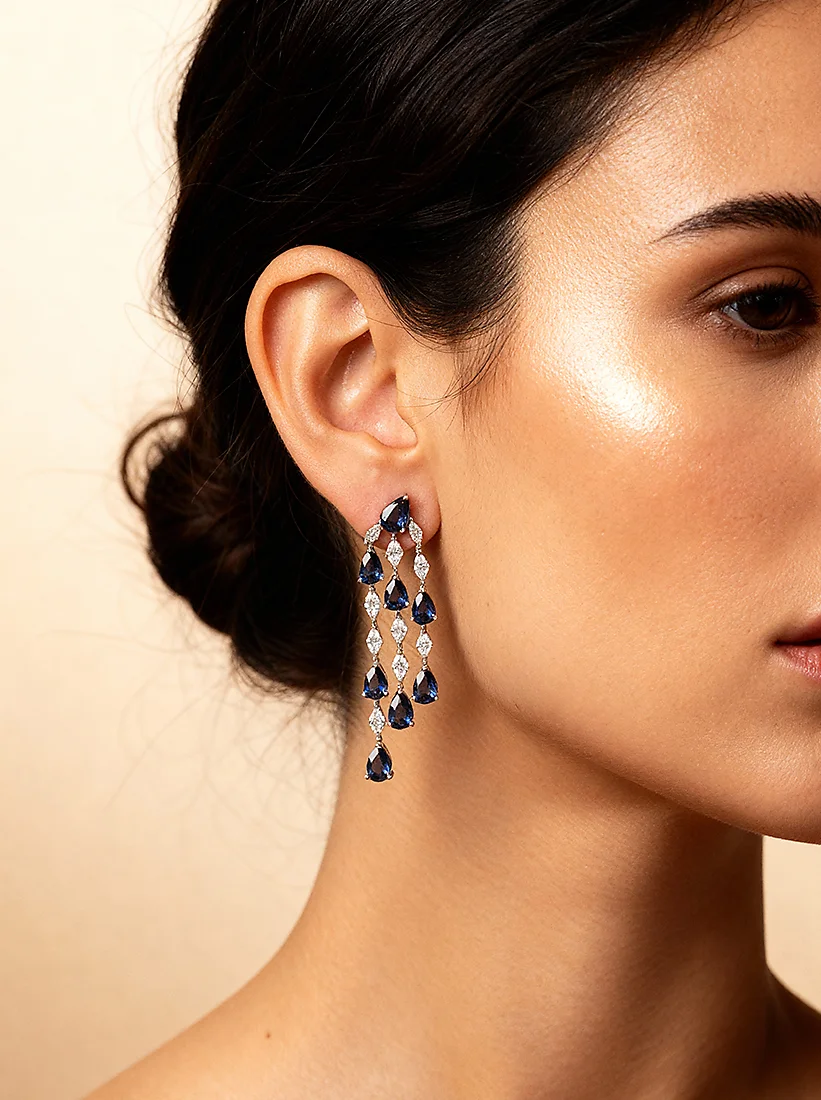 Um brilho elegante que desliza com suavidade, acompanhando cada gesto com luz azulada e delicadamente cativante. Suas linhas verticais alongam o perfil, trazendo charme refinado e presença inesquecível.